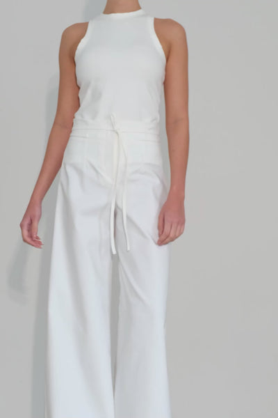 New Anabelle Natural pants. With back pockets and slim fit. Palazzo wide leg style. Made from 48% polyamide, 48% cotton, and 4% elastane.